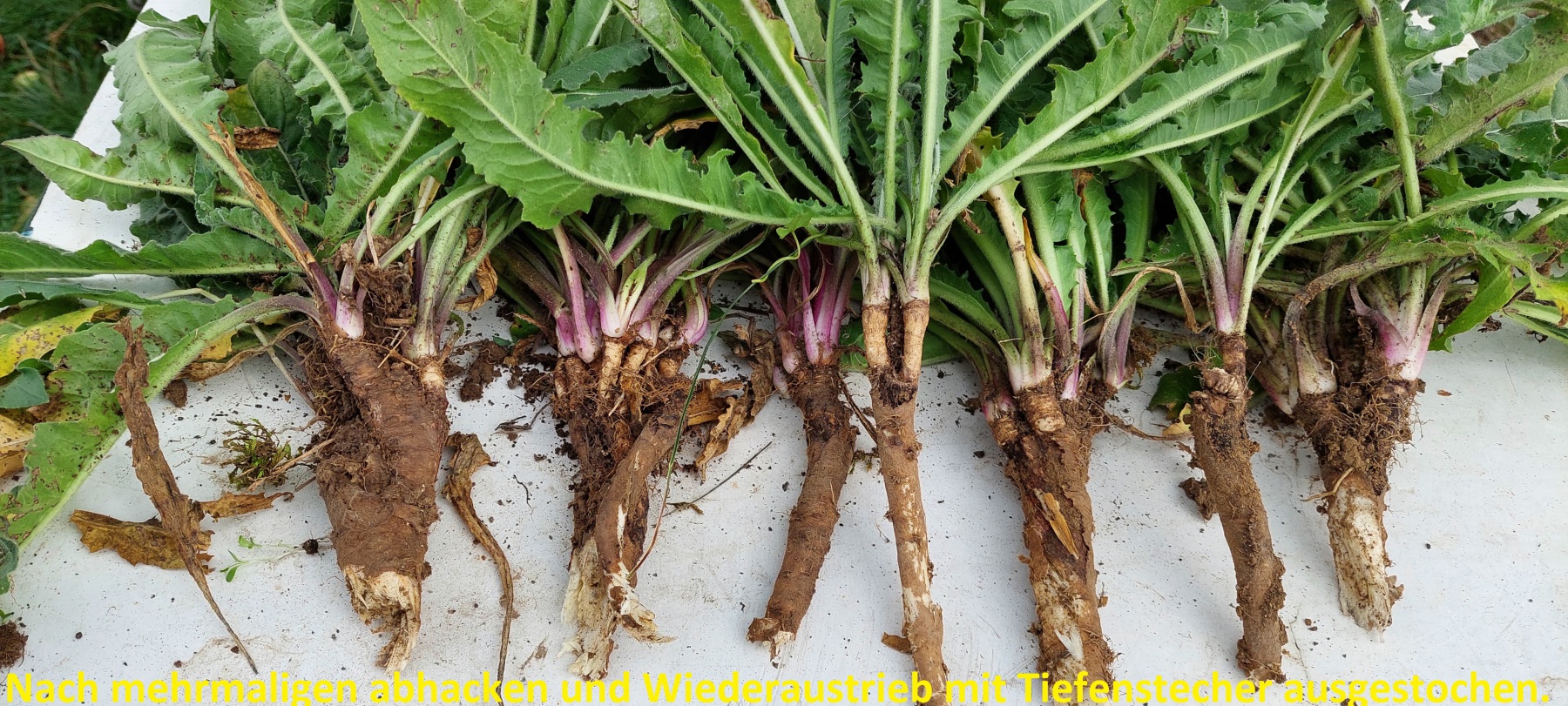 Am Engelsberg vor dem Zehntkeller, im Friedhof, vor der BAGeno und an vielen weiteren Stellen in der Gemarkung ist es vereinzelt zu sehen (Bildergalerie am Ende des Beitrags). In dieser Phase kann dem OZ noch Einhalt geboten werden. Nach dem aussamen ist es fast unmöglich das OZ wieder in den Griff zu bekommen und es wird alle andere Vegetation überwuchern wie es entlang der Taubertaltstraße schon Stellenweise zu sehen ist. In Bereichen wo das OZ vereinzelt auftritt ist es mit einem Unktauttiefenstecher ca. 15-20cm tief auszustechen.