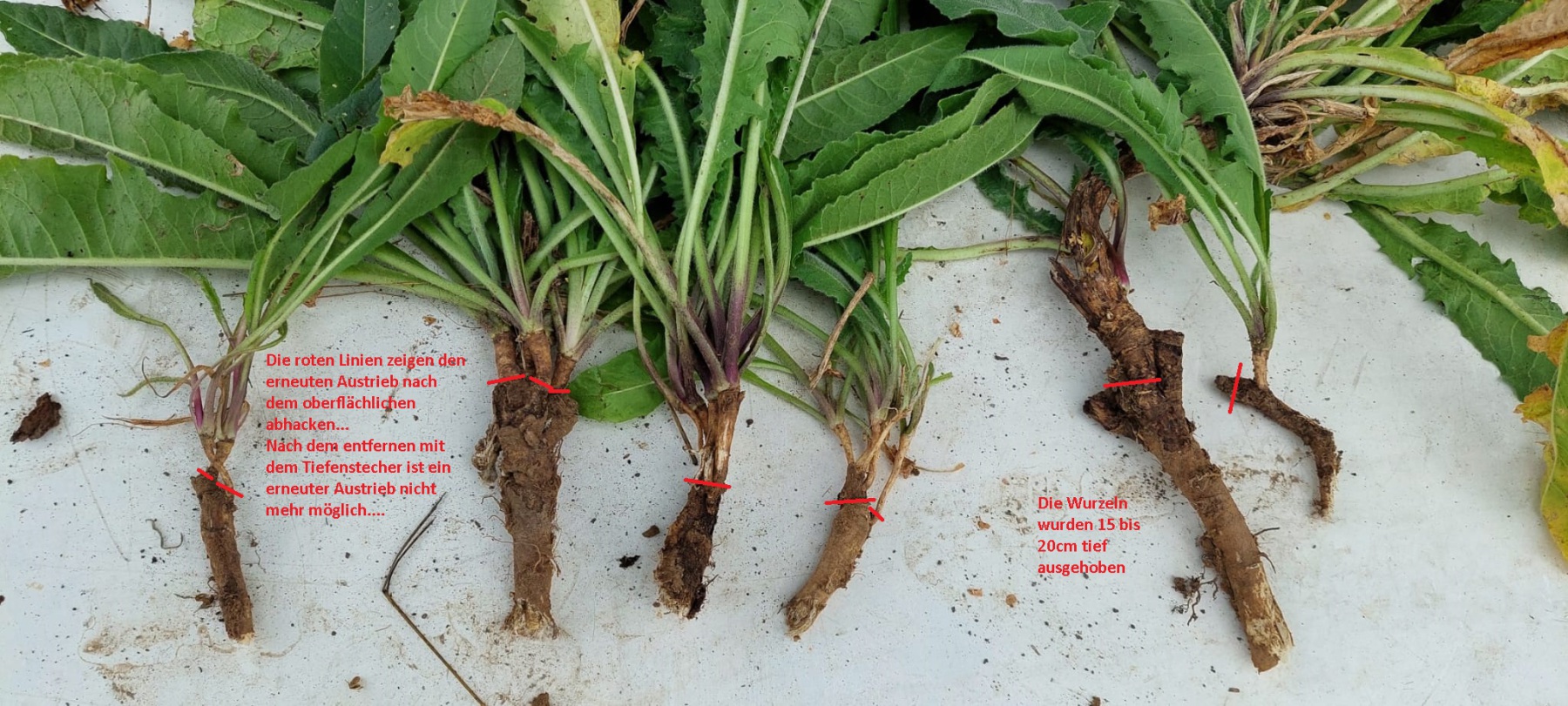 Es gibt keine andere Möglichkeit den Austrieb aus der Wurzel zu verhindern. Nach oberflächlichem abhacken reagiert die Pflanze mit verstärken Austrieb und das OZ erscheint danach noch kräftiger.