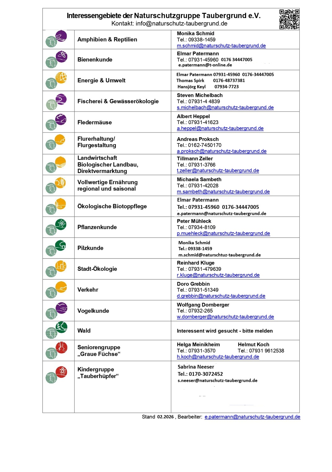 Interessengebiete (AK) und Kontaktpersonen ab 01.2026